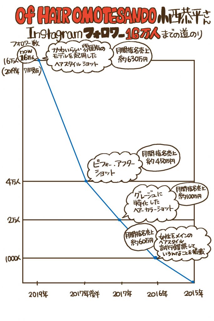 Instagramでフォロワー・約16万人を抱え、今や予約が困難なほど大人気のOf HAIR OMOTESANDOの小西恭平さんにInstagramをはじめるに至ったきっかけや、注目を集めるようになってからのサロンワークでの変化を伺いました。
