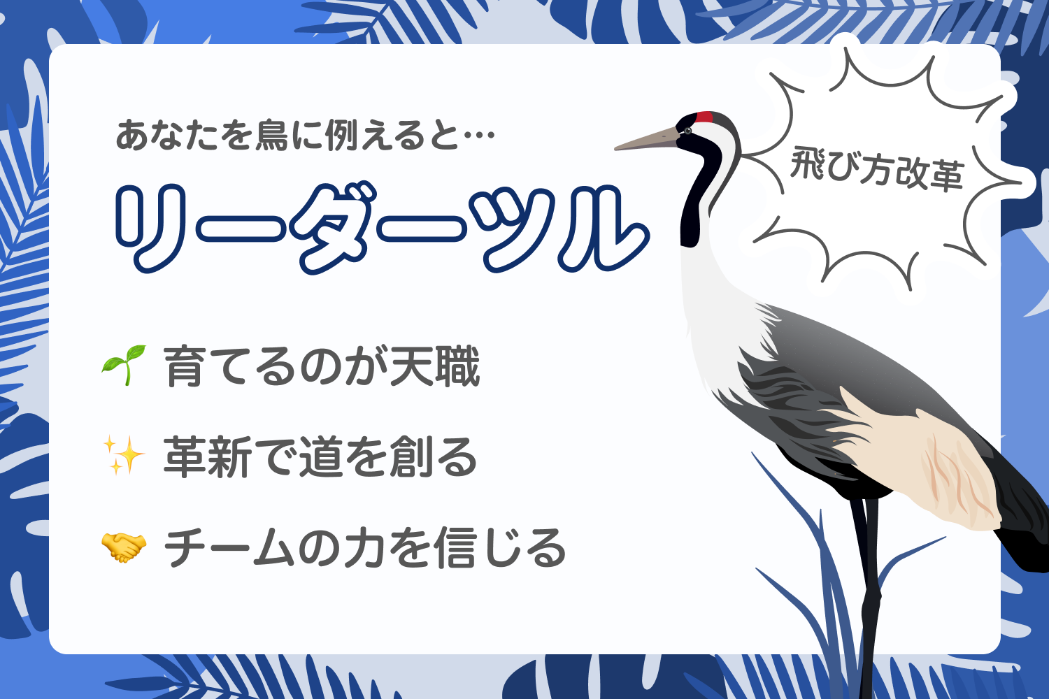 リーダーツルタイプのあなたは、組織の未来を左右する重要な人材です。
