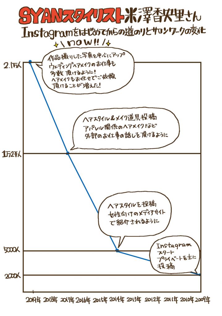 たくさんのSNSツールのなかで写真投稿に特化した「Instagram」は、細かい光の調整を加え、投稿した写真のトーンを揃えることで、ホーム画面に統一感を持たせることができます。今や美容師にとってInstagramは、自身の作品をアピールする重要なツール。自身の作品を展示した写真展を開催したことで美容師にも注目され、フォロワーがぐっと増えたSYANの米澤香央里さんに、Instgramをはじめてから起こったサロンワークやお仕事の振り幅の変化を伺いました。