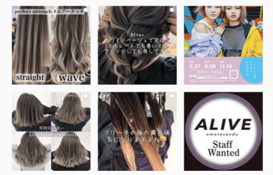 「最近はInstagramを見てお越しになる方が多いですね。『ALIVE』の全店舗共通のInstagramのアカウントは、現在フォロワー数が約4万,000人。投稿数は1日に30件近くなることもあります。スタイリストたちは投稿することが集客につながることをわかっているので、自発的に写真をアップしていくんです。どれもカラーに注目した写真ばかりですので、お客さまにはカラーカタログのように楽しんでいただいています」
