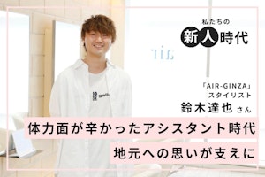 全国各地に直営店のヘアサロンを9店舗展開する「AIR」。空気のようにお客様の生活スタイルの一部に溶け込むことを目指す人気のサロンです。その銀座店でスタイリストとして活躍しているのが入社7年目の鈴木達也さん。