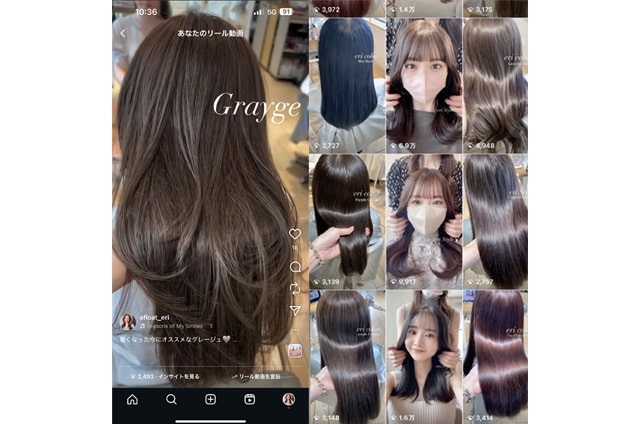 お客さまが求めている情報を入れることや、得意な寒色系カラーで投稿の色味を統一することを意識しています。ハッシュタグも工夫していて、「#表参道美容師」「#韓国ヘア」のようなビッグワードでは埋もれるので、例えば「#韓国ヘアはeri」などのようにスモールワードを作って投稿し続けると、検索で上位に出てくるのでおすすめです。