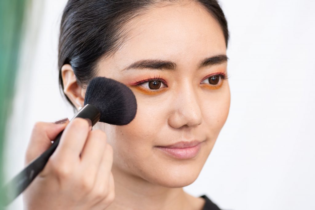 2.ブレンディング ブラシで、アイシャドウを塗布します
