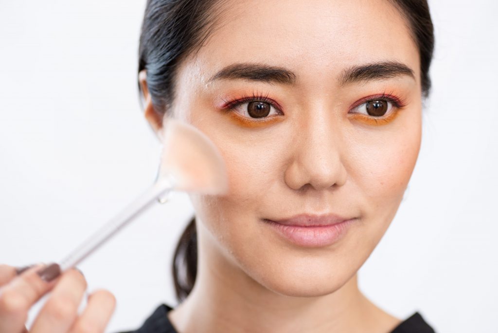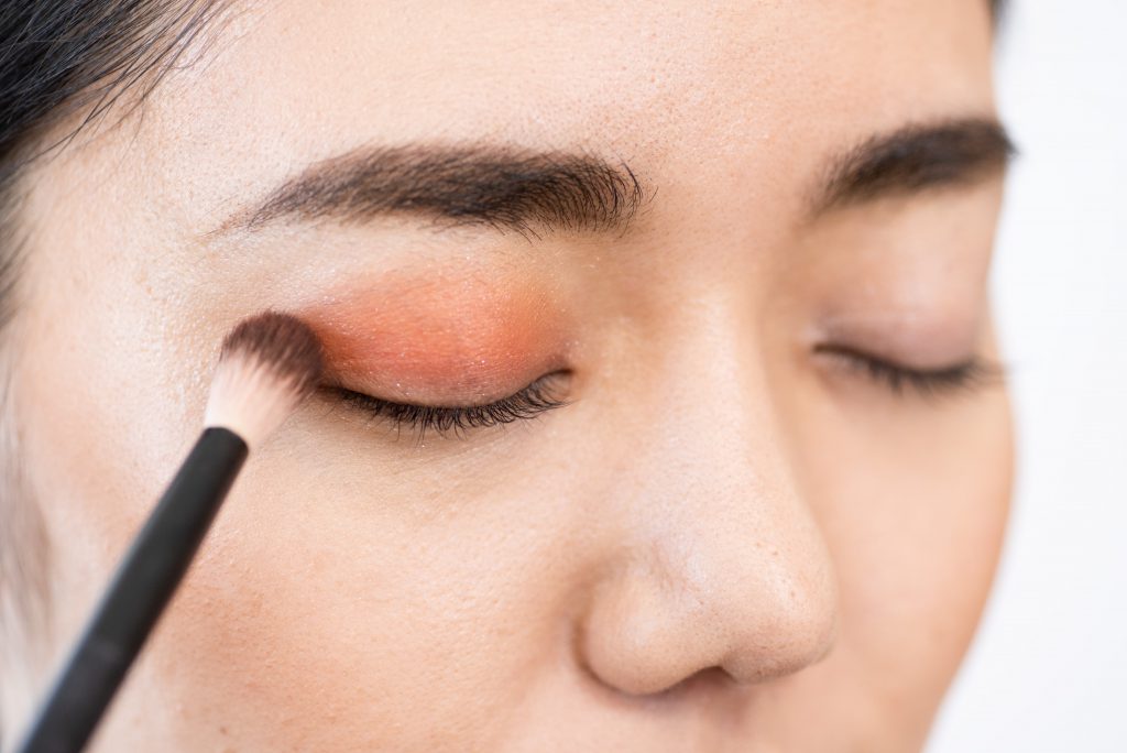 アイホールに、UT シャドウ パレットの04のオレンジを塗布します。