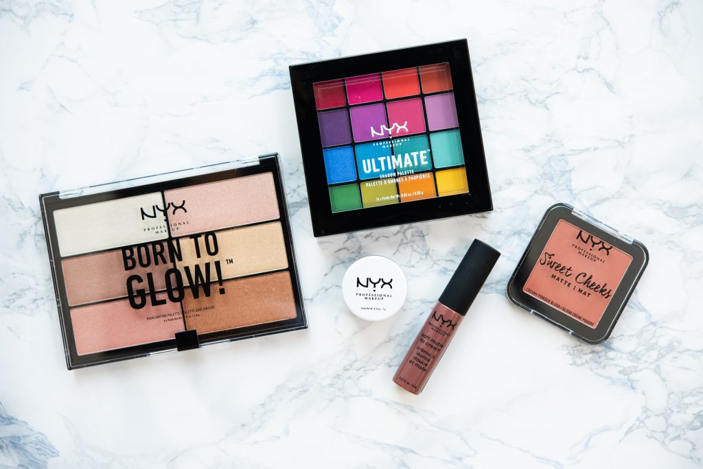 (左から順に)ボーン トゥー グロー ハイライティング パレット 01 3,200円、UT シャドウ パレット04 2900円、アイシャドウ ベース 02 1,300円、スィートチークス クリーミー パウダー ブラッシュ イン マット 10 1,200円、ソフト マット リップ クリーム 36 1,200円