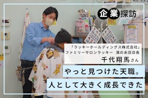 今回は「ファミリーサロンラッキー」滝の水店の店長を務める千代翔馬さんに、仕事を通してどのように成長することができたかお話しを伺います。中学卒業後、自分に合う仕事をなかなか見つけることができなかったという千代さん。理美容業界に憧れていたことから、理容師免許取得の費用を負担してくれる「ラッキーホールディングス」の制度に惹かれて入社を決めたといいます。