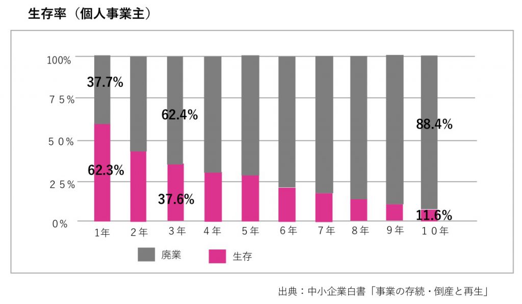 sainomarketing 「起業5年以内に8割が廃業?」個人事業主・会社組織の生存率・廃業率【調査データ】