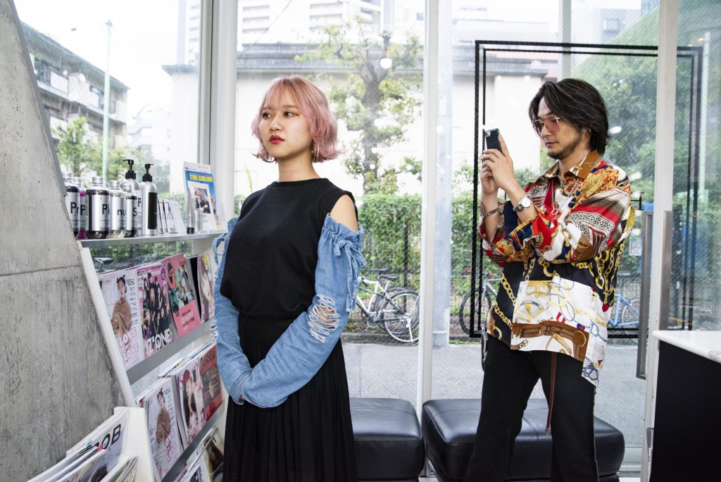 例えば、晴れた夏の日中は、モデルさんに強い自然光が当たらないよう、なるべく屋根がある場所で撮影するようにしています。サロン内で撮影するときは、ガラス窓をシートで覆って、入ってくる自然光の量を減らしています。くわえて、モデルさんに入り込む光の量が少なくなるよう、ガラス窓からあえて遠ざかって撮影したりして調整することも。逆に、空が曇っていたり、秋冬など自然光が弱い季節や時間帯の撮影のときは、少しでも自然光を取り入れることができるようモデルさんをガラス窓になるべく近づけて、撮影するようにしています。