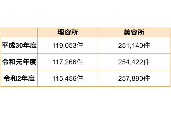 また、平成30年度からの事業所件数で比較すると、理容所が減少傾向にあることが一目瞭然です。その一方で、美容所はほぼ毎年増加していることがわかります。
