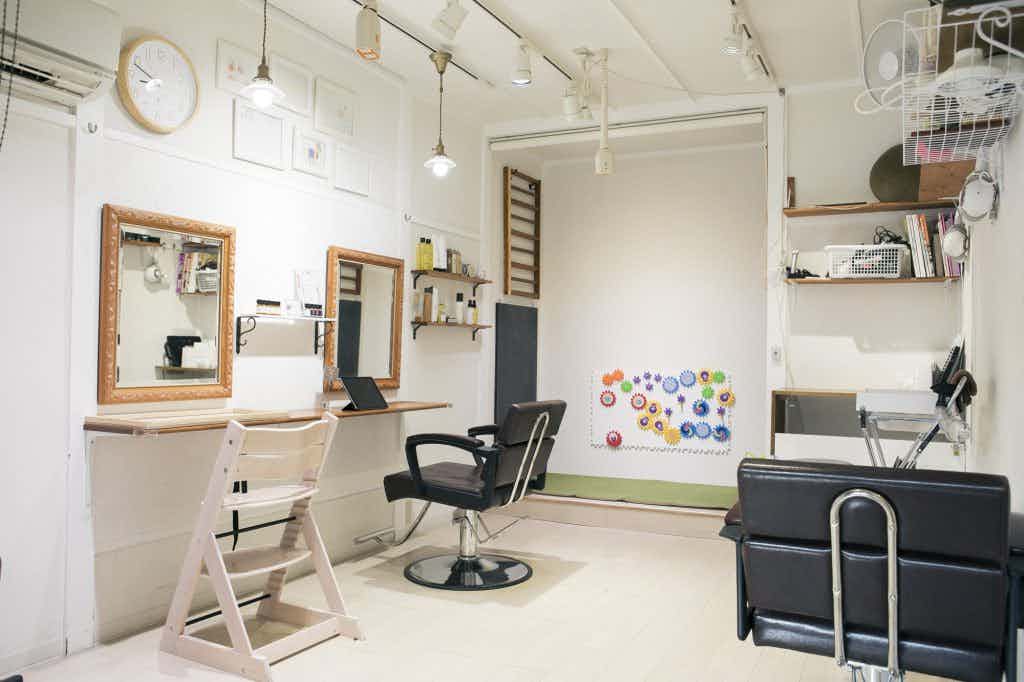 理美容師法で、お年寄りとか体を自由に動かせないとか、事情がある方にはお金をいただいていいんですけど、子どもがいて美容室に行けないっていう理由では、お金をいただくのが禁止されていたんです。当時は、開業届けも出していなかったので。でも、お店をオープンするにあたって、保健所に許可を取りに行ったときに聞いたら、理美容師法が変わって、子育てで美容室に行けない方にも出張カットしていいことになっていたんです。だから、オープン当初は、サロンでの営業と出張カットを並行してやっていました。だんだんお店が忙しくなって、出張カットはできなくなってしまいましたけど、訪問先での体験は、今でも変わらずサロンのベースになっています。