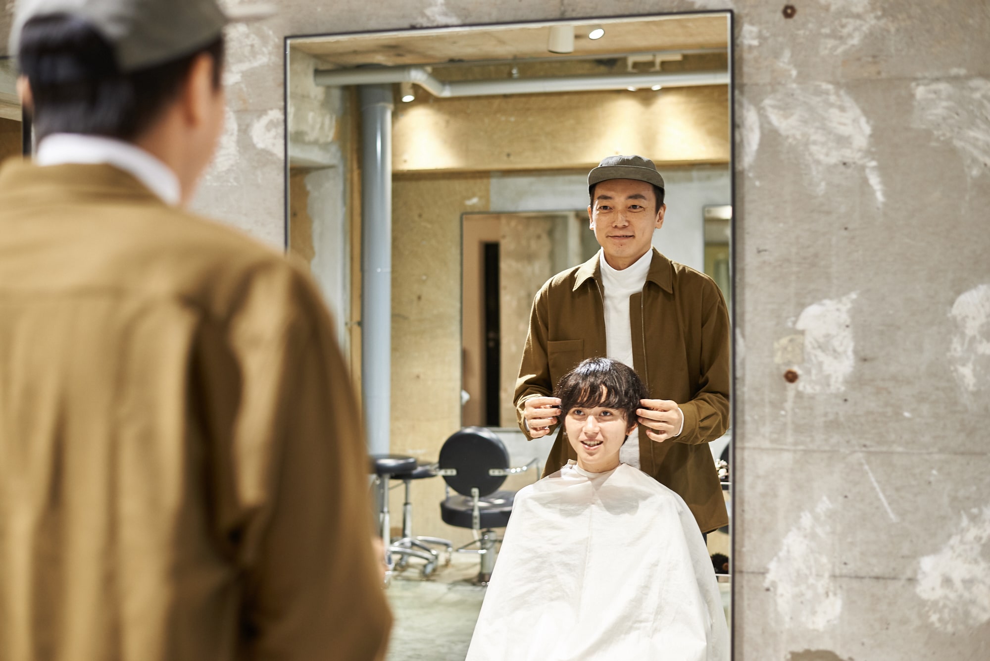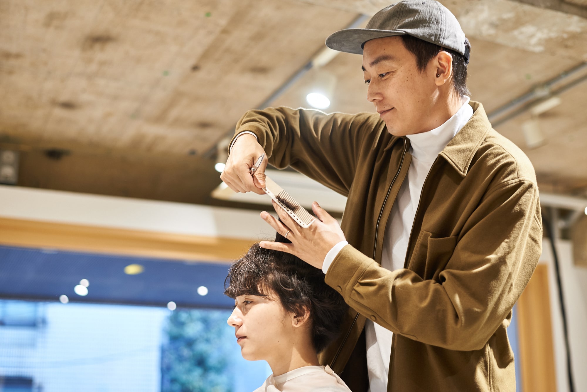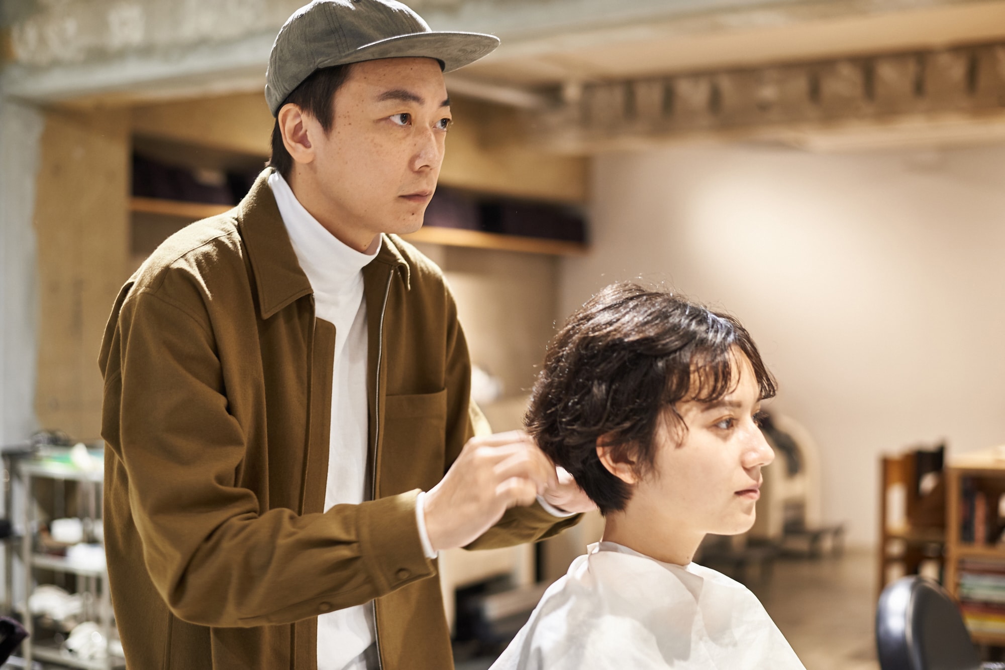 あと、サロンワークだと忘れがちなんですが、立ち姿でのバランスを1番大切にして、カットラインを設定しています。たった1センチで、本当に別物になると思うので。カットクロスをはずして歩きだしたときが、一番いい感じになるようにイメージしています。