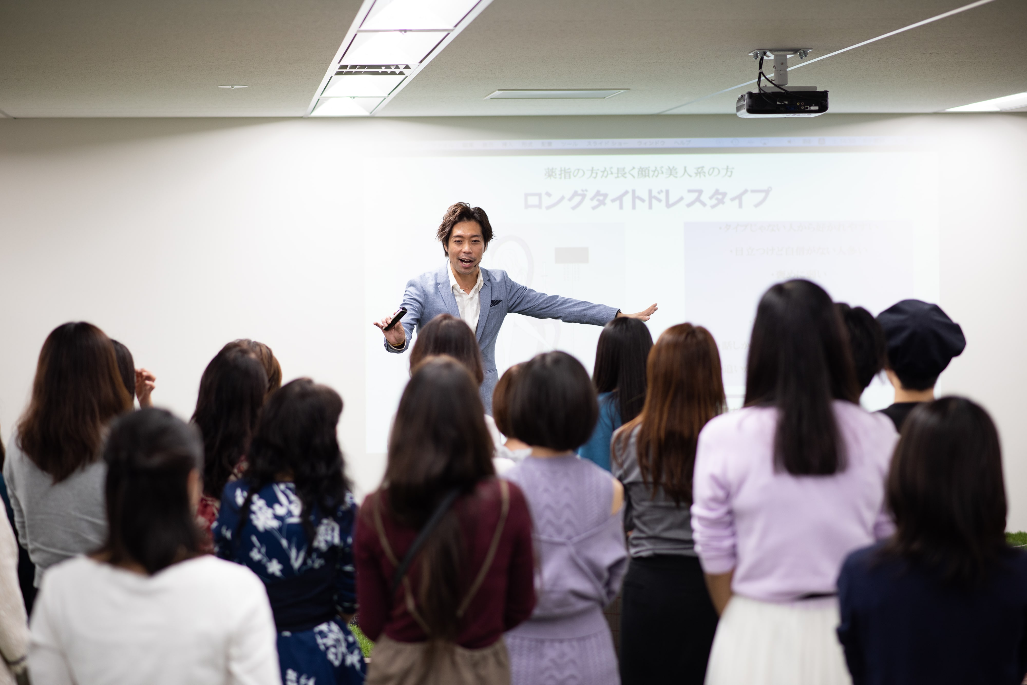 モテ髪診断とはモテマトリクス診断とも言いまして、まず、人差し指と薬指の長さ、顔の形で4タイプに分けます。さらに13歳で決まると言われる骨格をもとにした診断、さらに顔のパーツを見ていく診断を含めて、自分に似合うモテ髪を見つけ出していくという「究極」の似合わせ診断です。この本1冊で、自分に似合うモテ髪を見つけることができます。今日はせっかくのトークショーですので、診断を皆でグループ分けをしながら行い、タイプ別のデモンストレーションも行っていきたいと思います!」