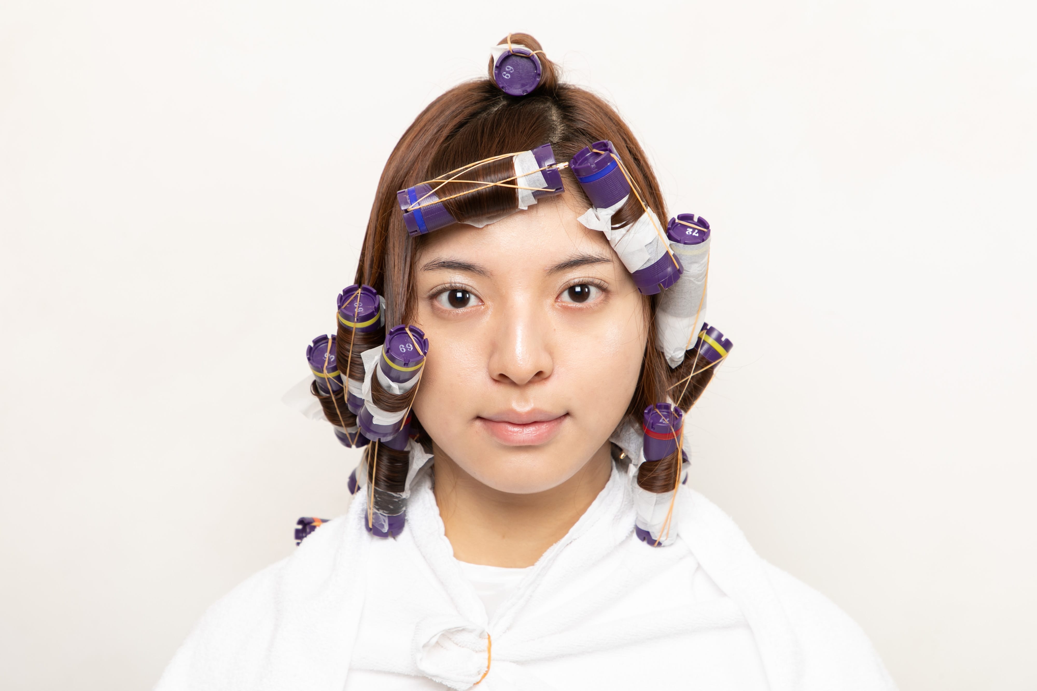 膨らみやすいミドルセクションに、縦のカールがつくスパイラル巻き入れることで、ボリュームを抑えつつパーマの質感をプラス。