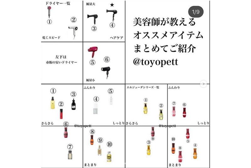 例えば、初回にヘアスタイルだけの写真を投稿したら、2回目はその写真にキャッチ文を入れます。3回目の投稿では、どんな髪質の人におすすめなのかを書き、次は他のスタイリングとの比較写真も掲載して目新しさを出すようにしています。それから、スマートフォンの画面は一度に9件の投稿が表示されるので、9件投稿するたびに改めて投稿し直しています。そうすることでホーム画面に新鮮味が出て、注目度が上がるんです。