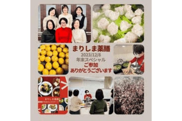 まりしま薬膳で掲げている言葉が、「学び・食べ・語らう」です。日々の幸せを感じて考えるクラスを心がけています。薬膳って「これを食べてはいけません」とか「あれを食べなさい」という決まり事が多いイメージがありませんか。今までの生活を否定しなくてもいいんです。ほんの少しだけ加えたり引いたりするだけで大丈夫。それだけで変化が実感できると思います。
