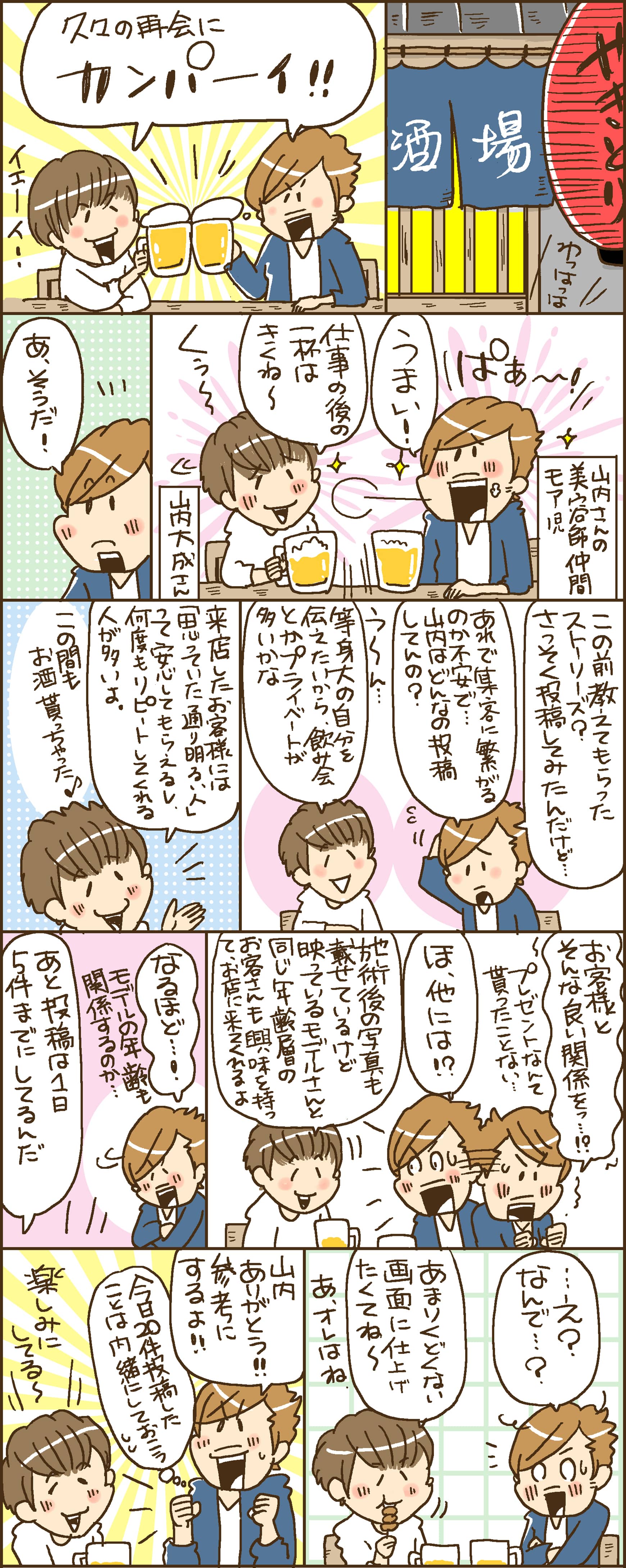 あえて、ストーリーズに飲み会などの様子をアップして、自分のキャラクターを伝えることもお客様に信頼感を与え、リピーターにつなげるテクニックの1つなんですね! また、Instagramに完成カットを投稿すると、写真のモデルと同じ年齢層の方がサロンに興味を持ち、来店してくださるようになるというお話にも驚きました!