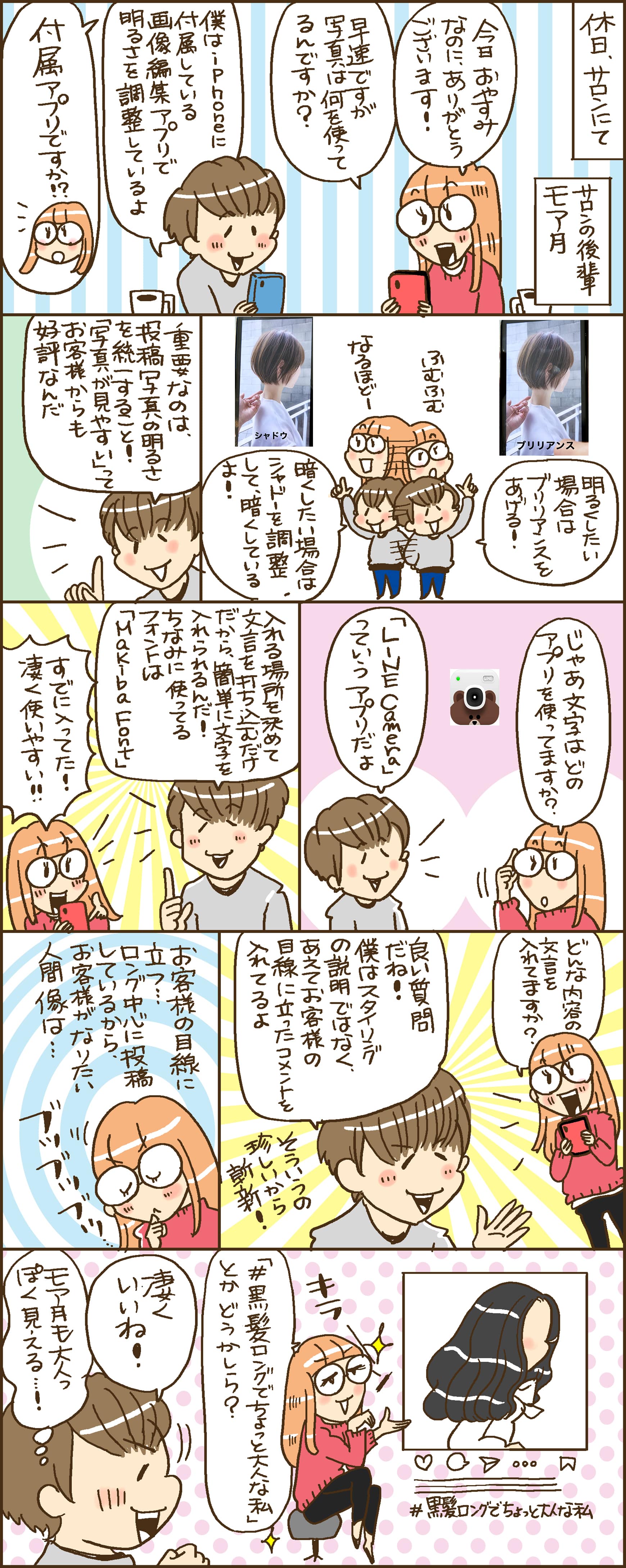 自身のInstagramに投稿した写真と同じ明るさに調整することでホーム画面に統一感が出て、注目度が上がるんですね! あえてお客様の目線に立ったコメントを写真に入れると、斬新に仕上げることができると学ばせていただきました。
