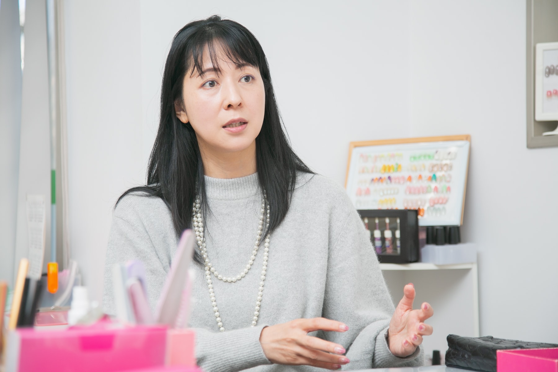 「最初に私がネイルの勉強をして、その技術をスタッフに伝えていきました。オープンの準備を進めている時は講師を雇うことも考えていましたが、毎月費用が必要となったため諦めたんです。私は元々ネイルが大好きだったので、スクールに通っている時が一番楽しかったかもしれませんね(笑)。