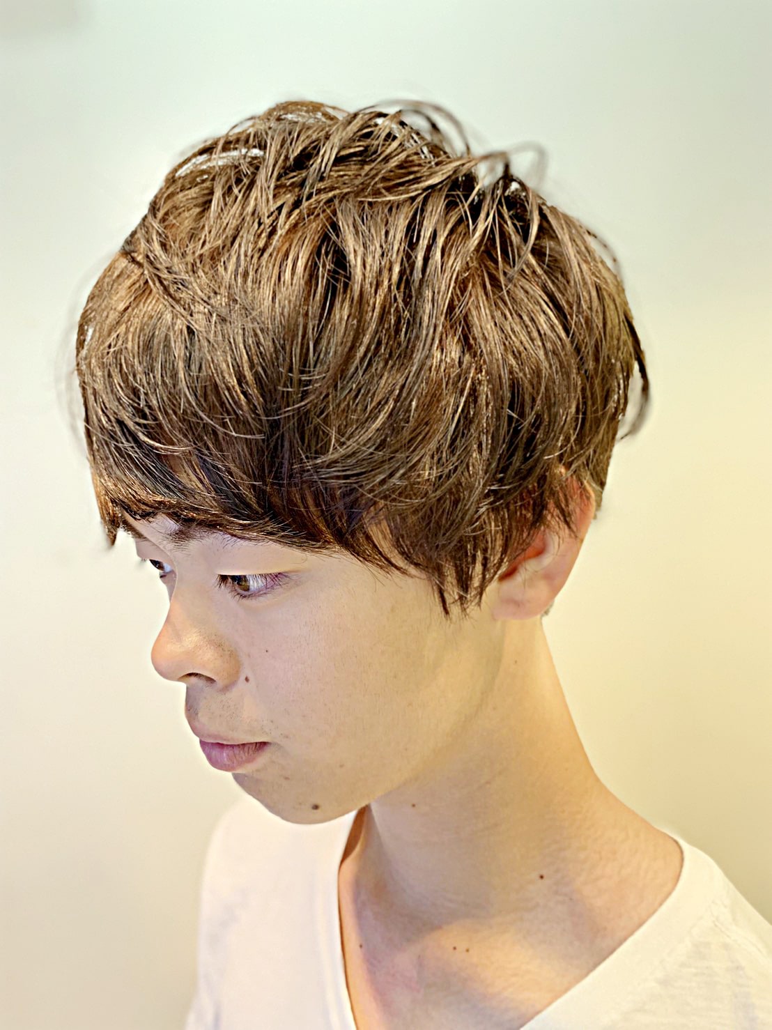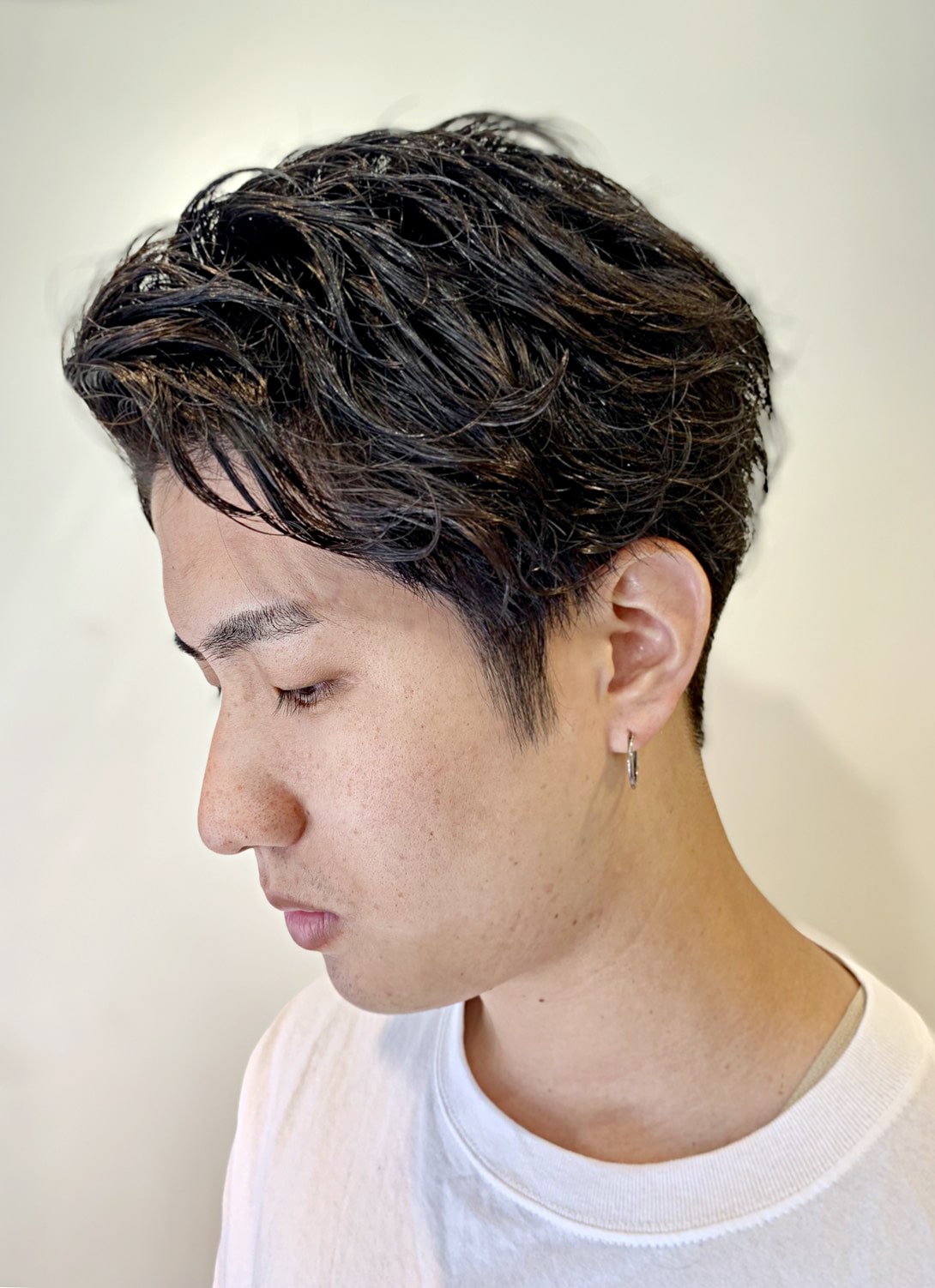 「メンズパーマスタイルです。扱いやすさ、セットのしやすさにこだわっており好評をいただいています」