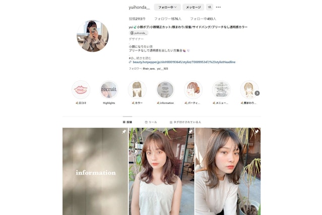 ただ「ショート」という打ち出しだけですと訴求する力が弱いので、ナチュラル、個性的などスタイルの雰囲気もあわせて設定したほうがいいといわれ、私は「ナチュラルなショート」を打ち出しました。インスタの打ち出しは、自分の強みや自分のお客様になりやすい層、その層がどんなスタイルを求めているかなど複数の要素を総合して分析する必要があるため、ひとりで導き出すのは難しかったと思います。先輩が一緒に分析をしてくれたことで、スムーズにインスタの戦略を決めることができました。