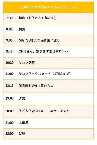 CHIEさん:私は元来サポートを求めるタイプではないんだと思います。だから、たとえ夫婦であっても、自分ができることは自分でしたい。甘えることはしたくないんですよ。私は一生、お客様やスタッフを大切に想い美容師として生きていたいと思っています。子どもが生まれて、大切な宝物が家族として増えたことで確かに働く環境は大きく変わりましたが、根っこにある部分は何ひとつ変わっていません。さらにパワーアップしています。