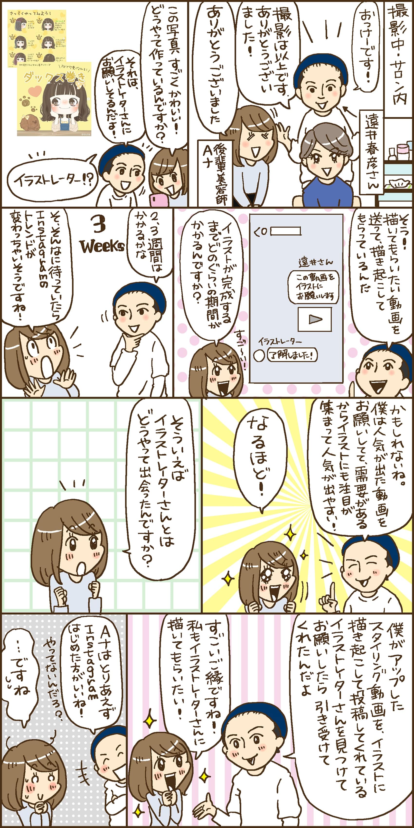 可愛いイラストでヘアアレンジの仕方を紹介した投稿が多くのお客様から人気を集めているiki by L.O.Gの遠井春彦さん。そんな遠井さんにスタイリング動画がイラストになるまでのプロセスを伺いました。