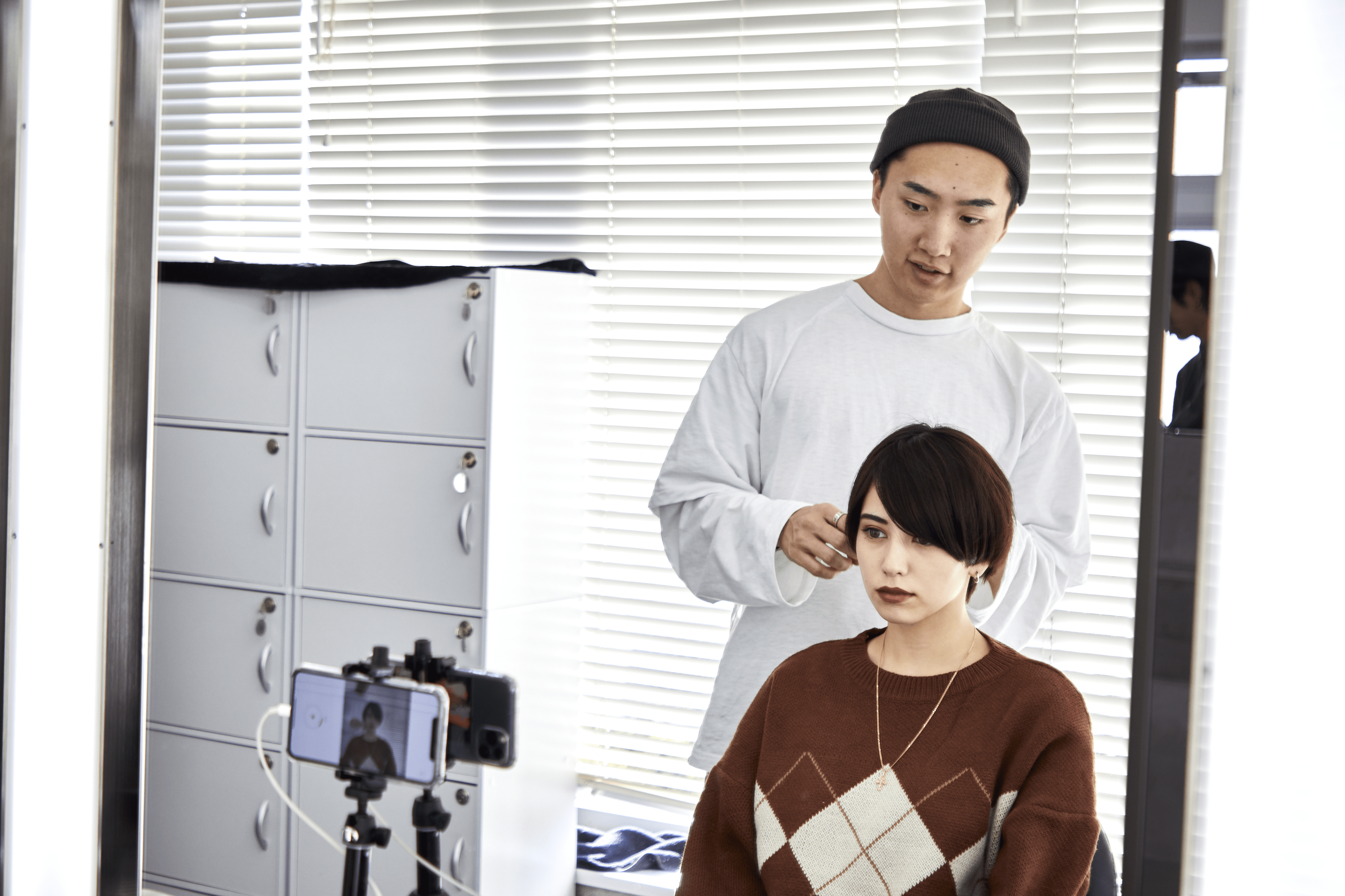 A.カウンセリング・施術前・施術後の3つのシーンを入れることです。動画の冒頭には、僕がお客様と向き合っている美容師だということを伝えるためにカウンセリングをしているシーンを入れています。次は、施術後の変化を見せるために、これからカットするというシーンを入れていますね。そして動画の最後に施術後のスタイリングを入れています。この3シーンのみで構成することで、1分の長さにまとまり見やすく仕上げることができます。