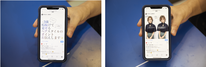 A.スワイプの1枚目に『Before・After』などの比較写真をアップし、スワイプの2枚目にBeforeとAfterのそれぞれの写真に説明文を入れるようにしました。施術後の変化をよりわかりやすく伝えることができたのか、画像保存数が増えましたね。さらに、スワイプ投稿を活用すれば、お客様のお悩みを静止画でわかりやすく届けることも出来ると思い、スタイリングについてのお悩みに寄り添った投稿もするようにもなりました。投稿に試行錯誤をするようになってから、Instagramに注目を集めるためには、写真のレイアウトも重要だと思い、編集アプリを使って写真の色味の編集を加えたところ、フォロワーがぐんと増えましたね。