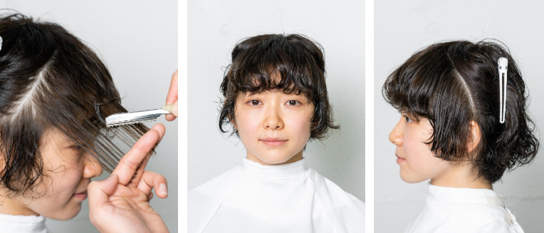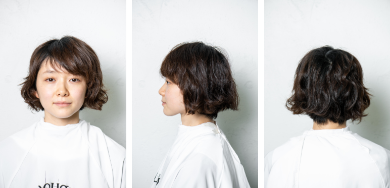 どんな履歴があるか、髪のクセがあるかで、提案を変えるのも美容師の腕の見せ所。薫森さんが提案してくれたマッシュショートは、パーマ履歴を活かしつつ、マッシュのカットラインでトレンド感もプラスしたデザイン。少しのカットで、ガラッと印象を変える提案のひとつとして、参考にしてみてくださいね。