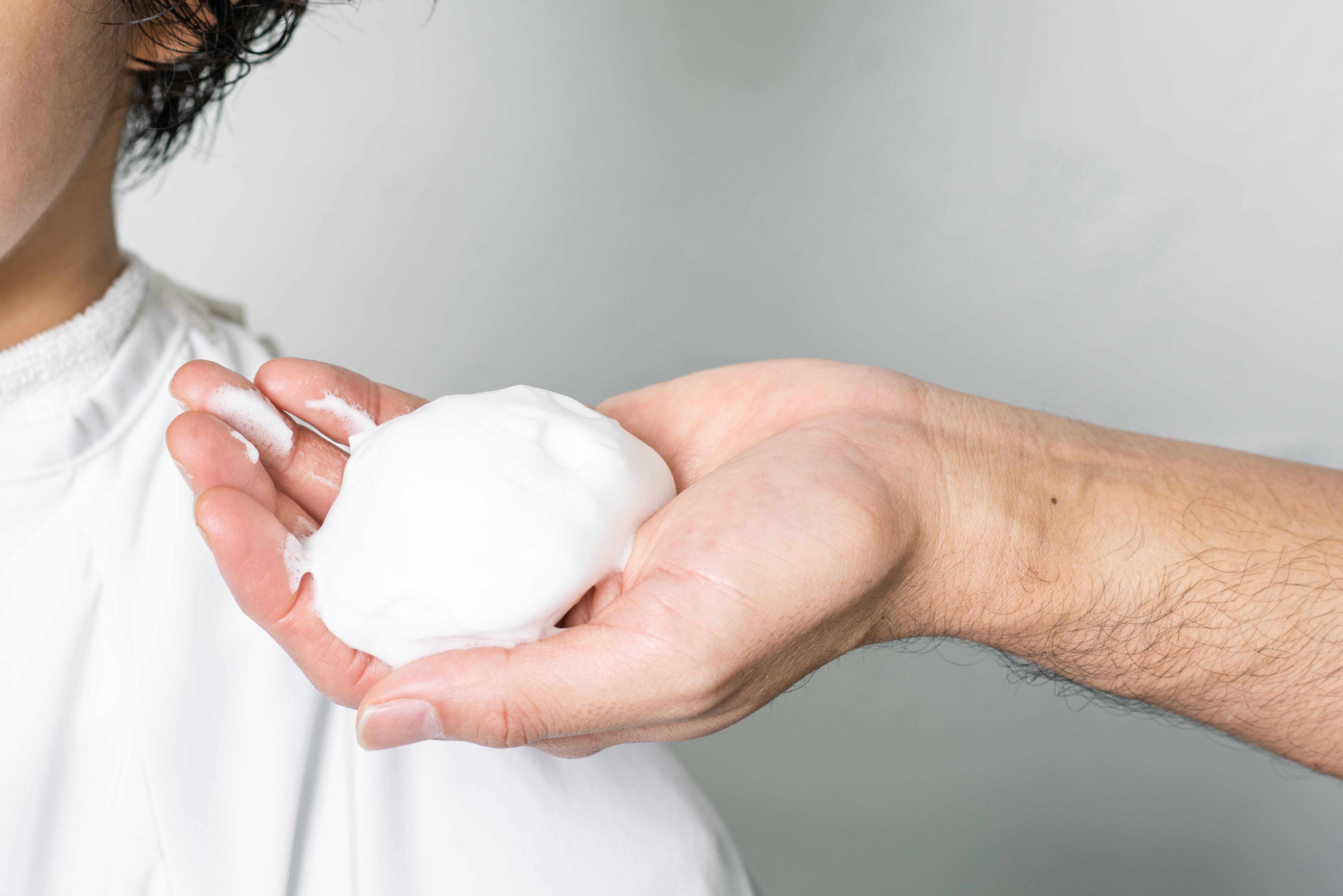 トリートメントムースをたっぷり手に取り、ポンポンと髪にのせるように広げたら、握りながらなじませていく。ソフトワックスを少量、手にのばし、毛先中心にもみ込む。かたちを整えて自然乾燥。