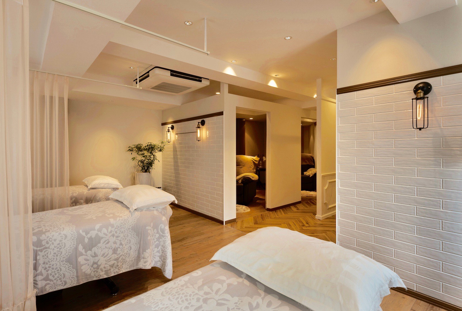「ベッドにこだわっており、そのままだと硬すぎるためシーツとの間にクッションや綿を詰めてやわらかくしています。また、枕やBGMもリラックスのできる落ち着いたものを選んでいて、お客さまからは『美しくなると同時にリフレッシュできました』というお声をいただくことも多いですね。施術中に眠る方もいらっしゃいますから、癒やされる空間作りにはとても力を注いでいます」