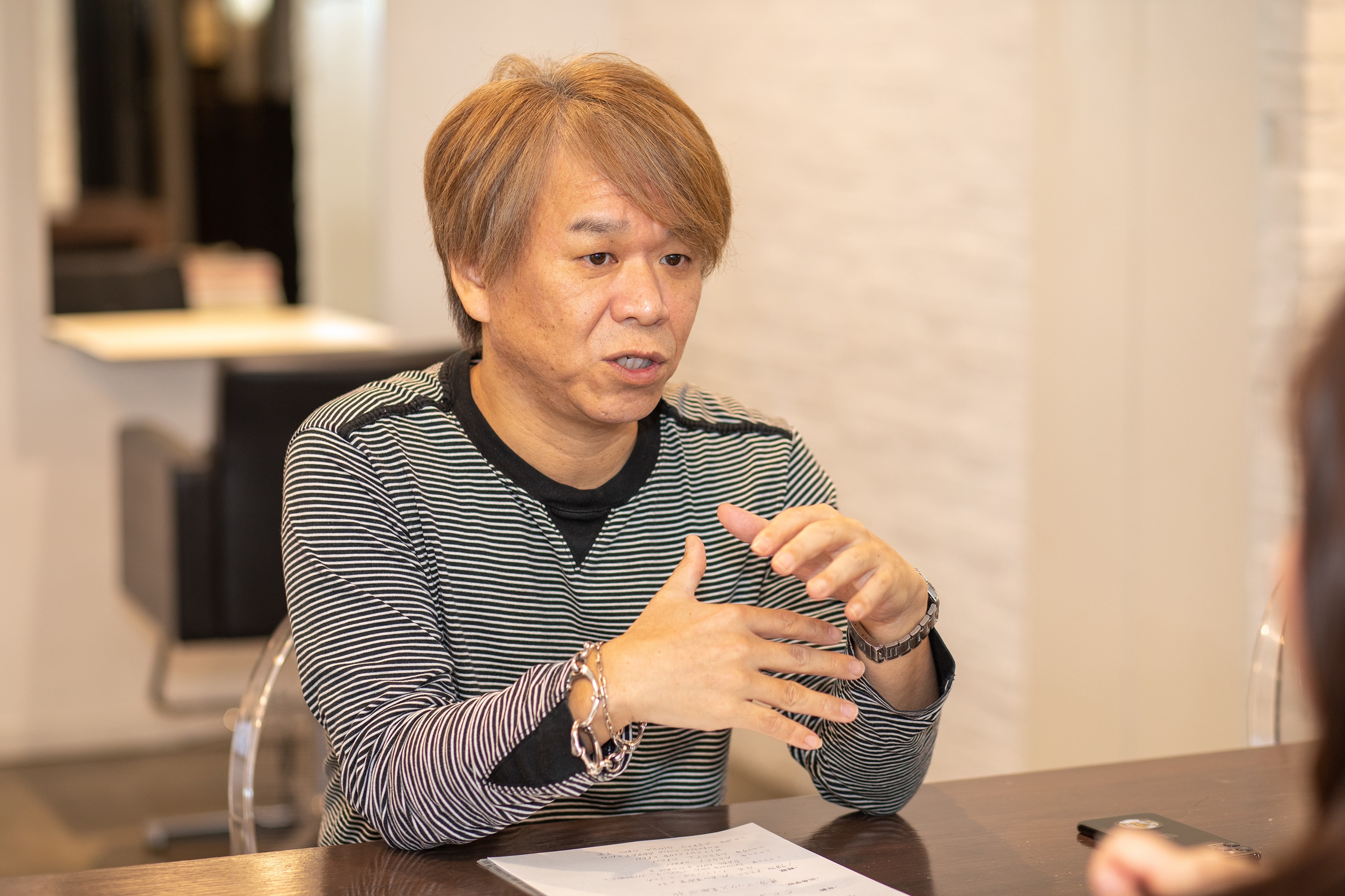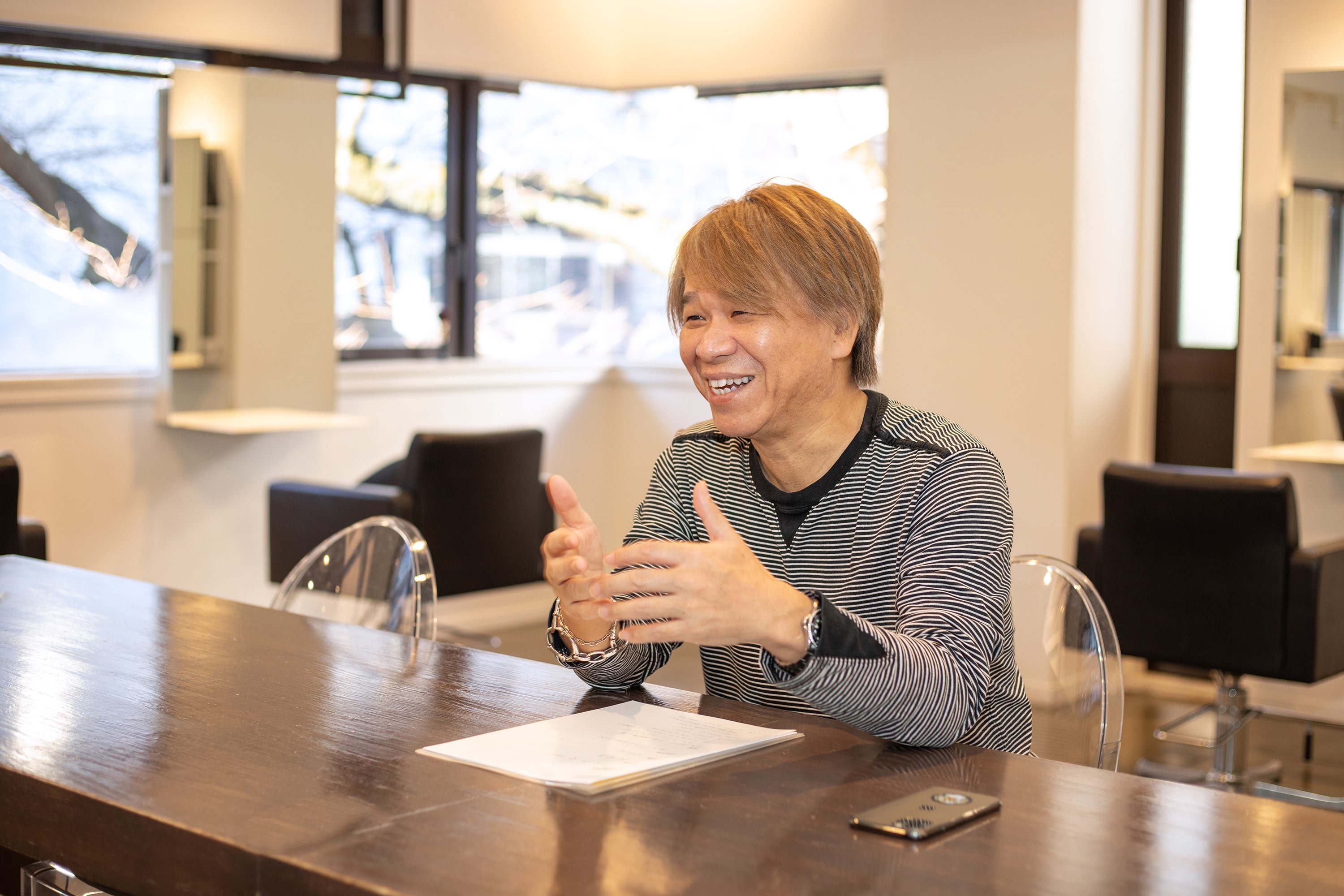 タレントさんにそうやって指名いただけるということは、信頼関係がなきゃダメだと思うんですね。それまでの蓄積や信頼関係があったからこそ、指名いただけたのかなと。だから、今アシスタントをやっている人たちには、『先輩のお手伝いをしている』という意識で仕事して欲しくないというのはメッセージとしてあります。お手伝いをしているって考えながら仕事するのと、「頼まれた仕事は自分がプロとして100%満足してもらうように仕事をする」って思いながらやるのとじゃ全然違うと思うんです。そうすることによって、ご縁があったり、本物に近づくことができると思います。お客様から見たら、アシスタントではなく『一人の美容師』じゃないですか。そこは意識しながら仕事をしてもらいたいです。