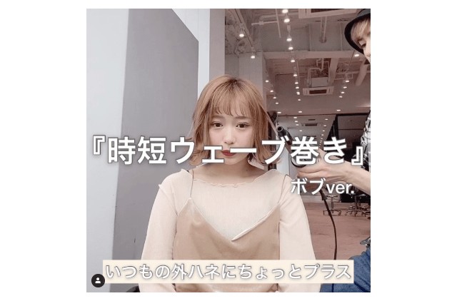 例えば、今回の動画は、「忙しい人でもボブのウェーブが叶いますよ」ということを伝えるために、「時短」という言葉を入れています。加えて、「いつもの外ハネにちょっとプラス」というワードを入れて、スタイリングの仕上がりをお客様にダイレクトに伝えることも意識しています。