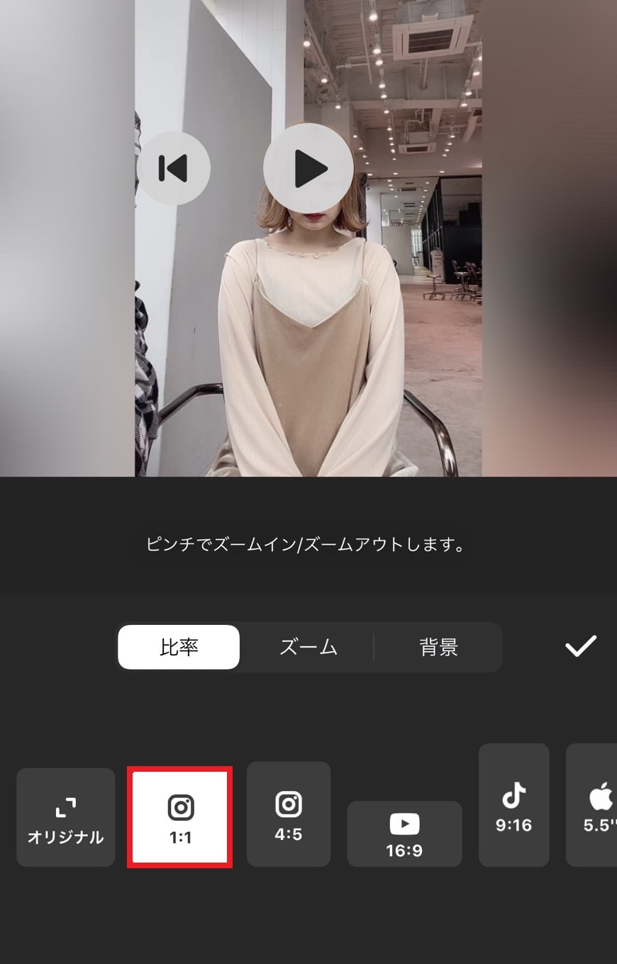 ツールの『キャンバス』で画面比率と画角を調整しています。インスタで大きな画面で見ていただくために、画面比率は1:1のものを選んでいます。
