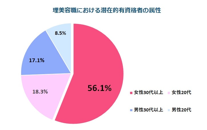 現在、24万件以上の美容院があり、約50万人が美容師として働いています。新たに美容師免許を取得する人数としては毎年約2万人です。しかし、この数年は年に5,000人程度の増加しか見られません。美容師は独立したり個人事業主として働く方が多いためあまり定年という概念がないのですが、年間1万5,000人ほどが離職していることになります。