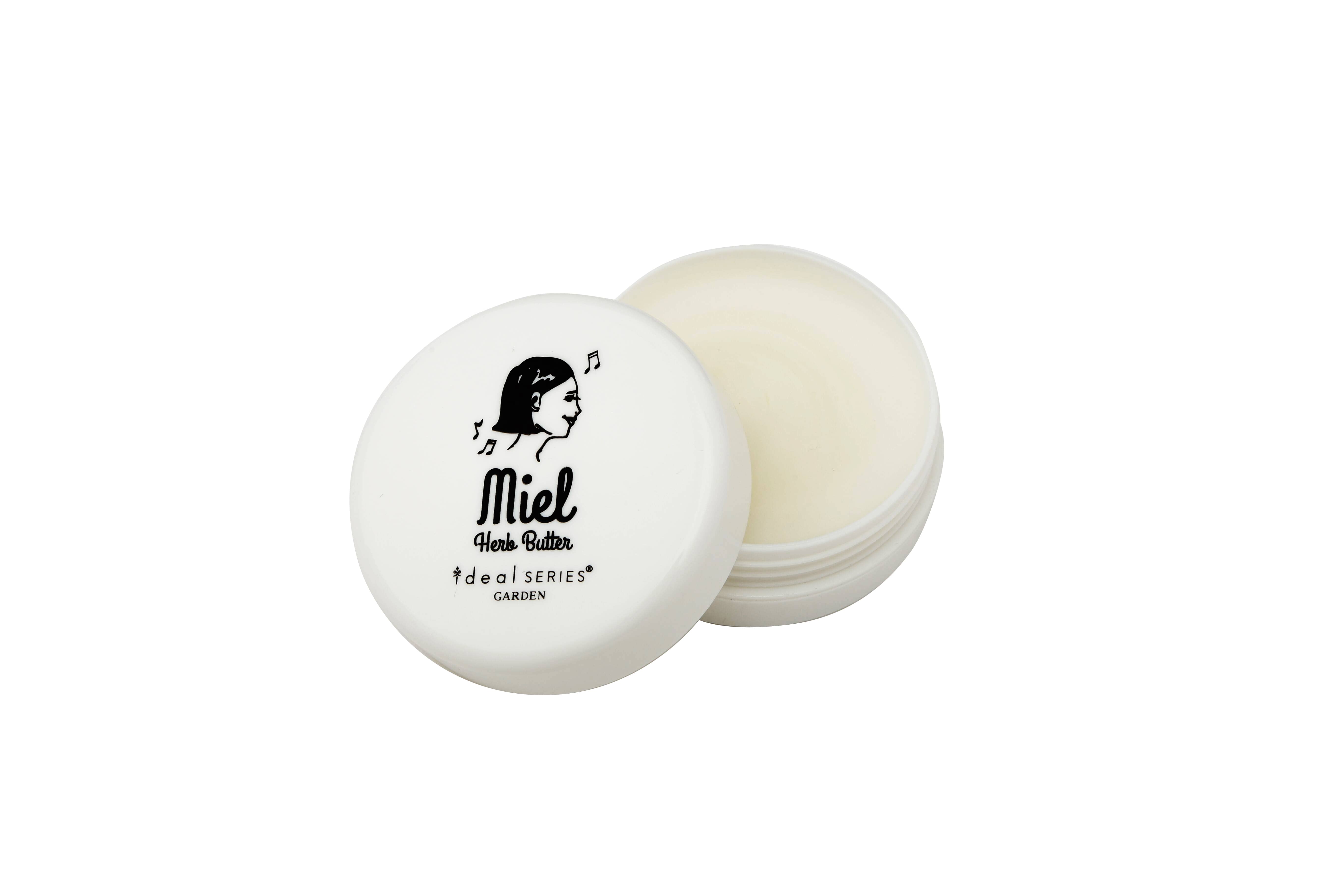 『ミエルハーブバター』はナチュラルなツヤ感が魅力のアイテムで、ほぼ4つの成分、シアバター、ムルムルバター、ミツロウ、アボカドオイルだけでできています。使い方は、固めのテクスチャーを少量手の平で溶かしオイル状にし、髪になじませます。すると時間の経過とともに髪の上で溶かしたバターが元の堅さに戻るので、スタイルを自然にホールドすることができます。