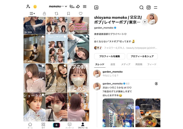基本はInstagramですが、最近はTikTokやThreadsも活用しています。TikTokは3年ほど前から運用していましたが、ここ1~2年で集客力を強く感じ、本格的に力を入れ始めています。