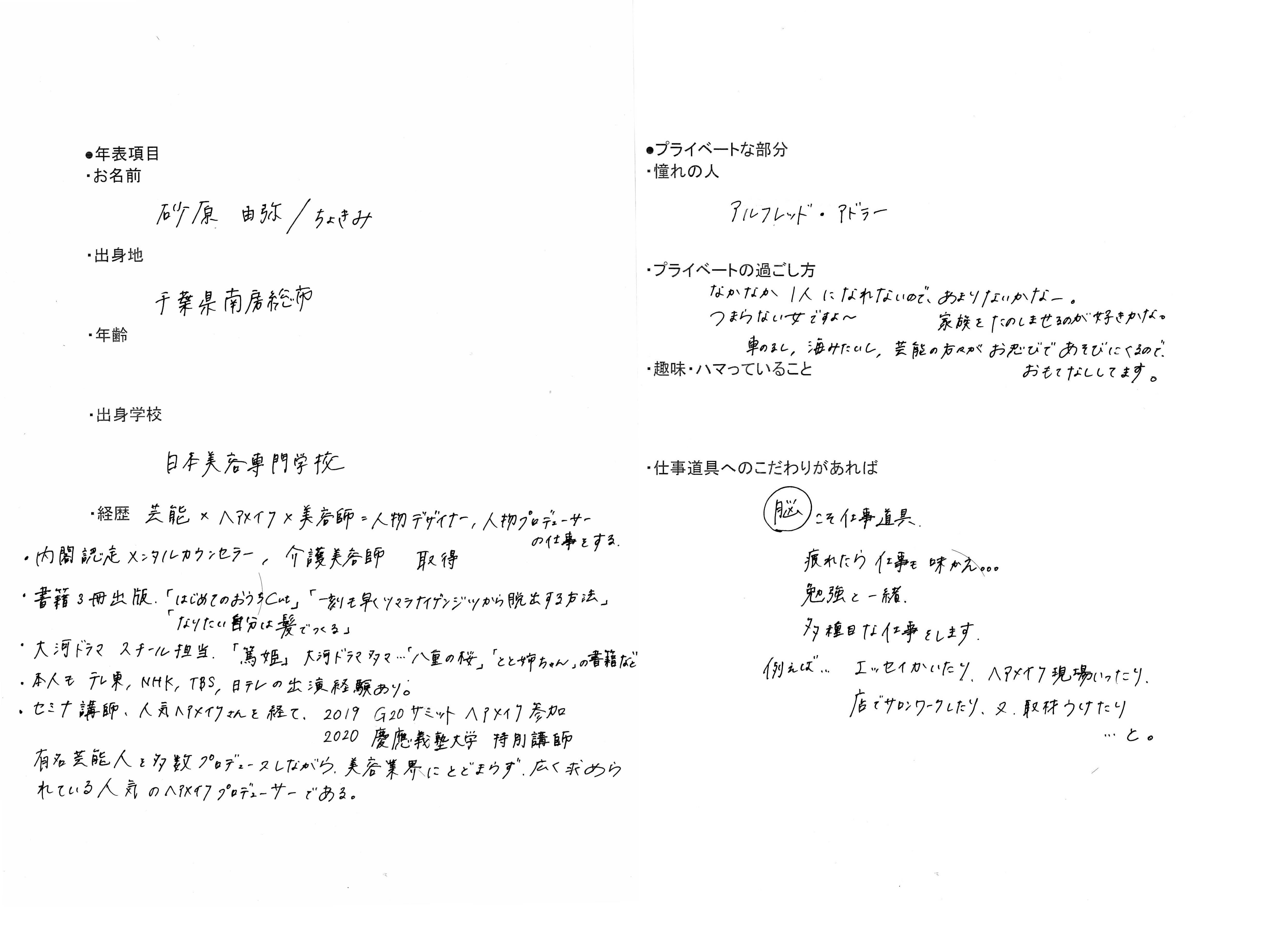 人気芸能人のヘアメイクを担当し、多くの有名俳優から熱い支持を得る砂原由弥(通称:ちょきみ)さん。表参道UMiTOS(ウミトス)」と千葉県の南房総市にある「海と砂原美容室」代表でもあります。サロンワークをしながら、ヘアメイクの仕事もする多忙な日々を送っていた砂原さん。ハードでも絶対に続けるという想い一心でがむしゃらに仕事をしていたそう。前編では砂原さんの生い立ちやアシスタント時代の話について伺いました。