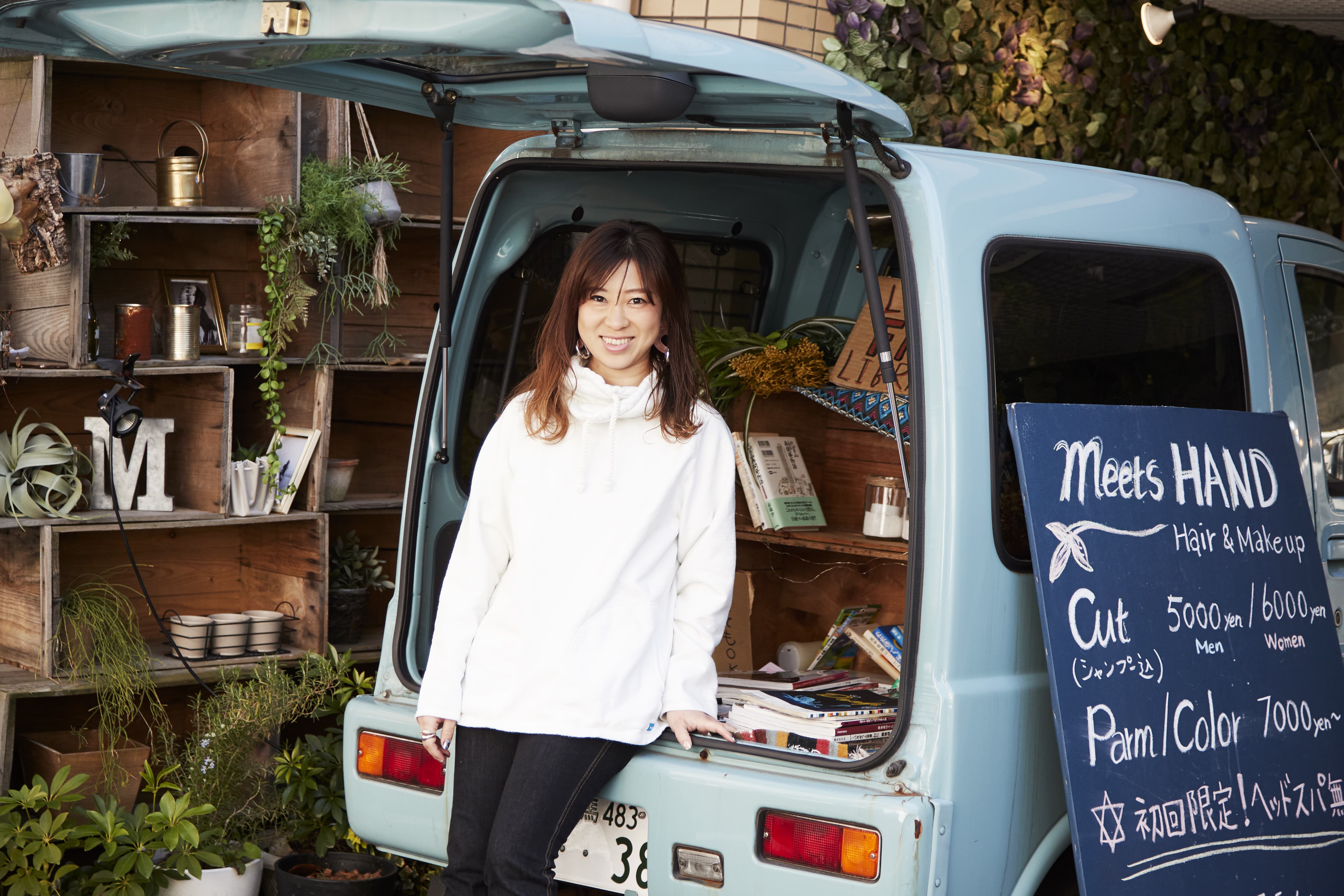 2017年8月に誕生した恵比寿の美容室『meetsHAND』。水色の車が停められた入口を抜け、店内に足を踏み入れるとゆるやかな空気に包まれます。内装は木製の棚をはじめ、白い壁や看板など手作りにこだわり、温もり溢れる空間が広がっています。そんな『meetsHAND』は、地域の方々を中心に大人気。その背景には、多様なサービスの展開や、ゴミ拾い活動をはじめとする地域交流がありました。