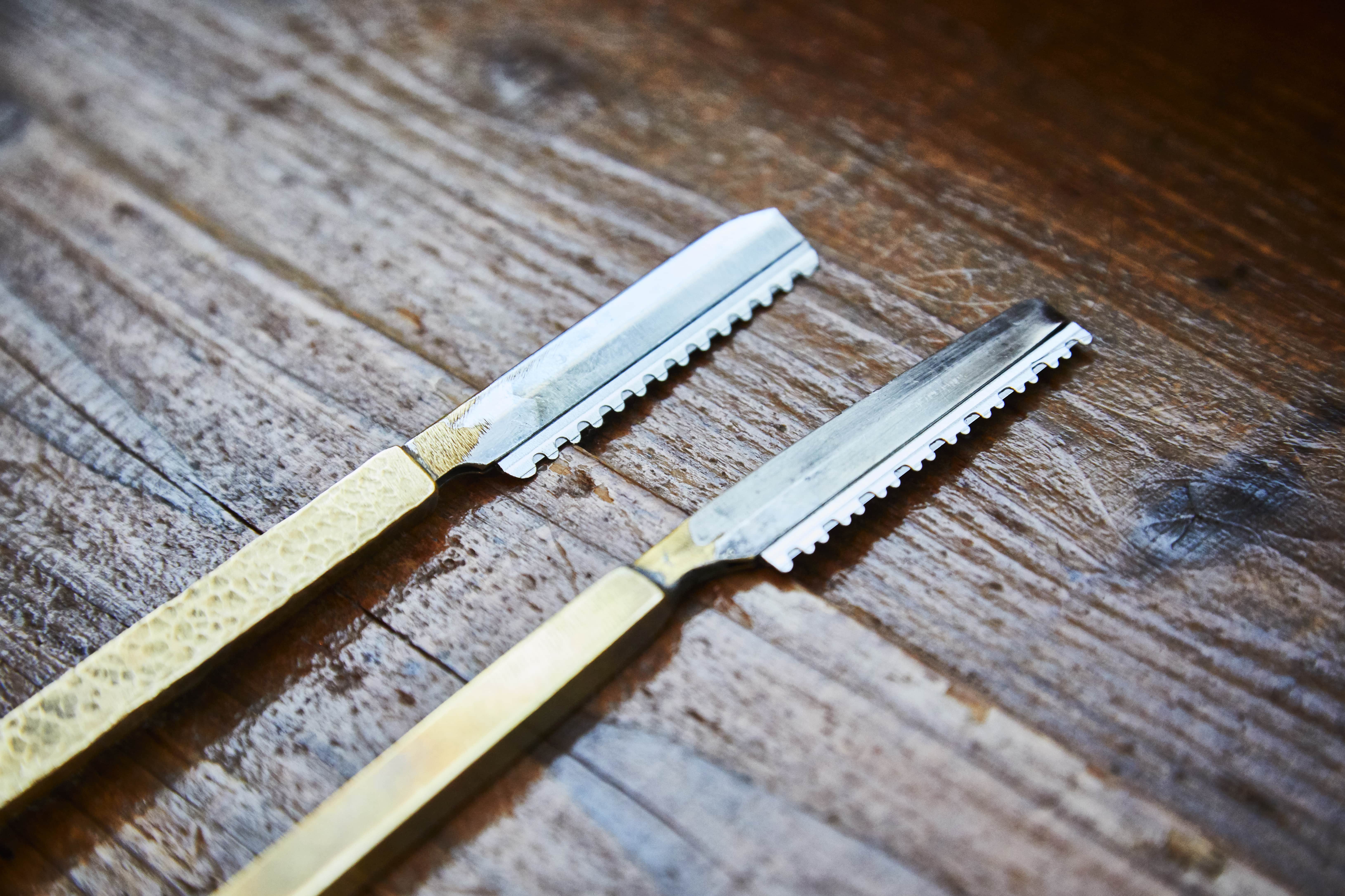 商品のこだわりは、適度な重量があったほうが削りやすいので、材質に真鍮を使ったことです。今回は、オリジナルシザーの「グリップシザーズ」について詳しく紹介したいと思います。