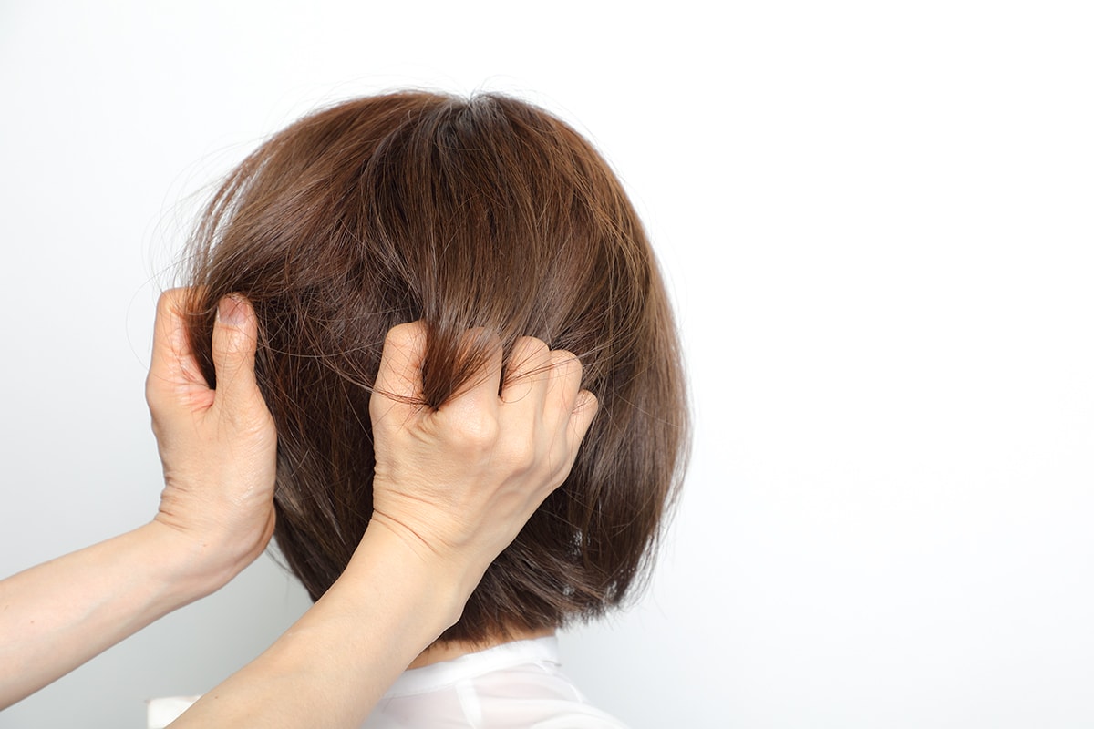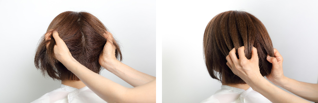 最後にうしろからくしゃっと揉み込むようにして、ふんわりとした丸みを強調。