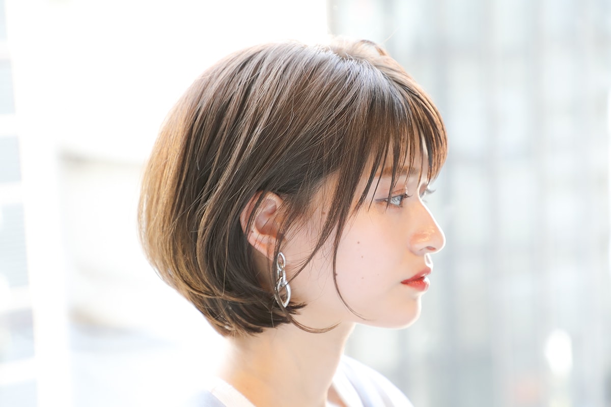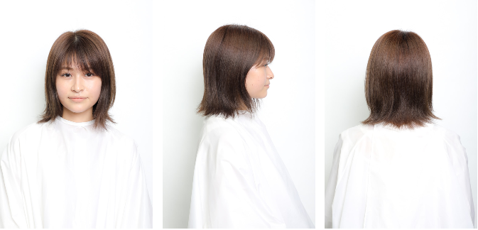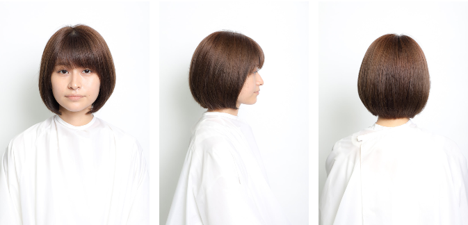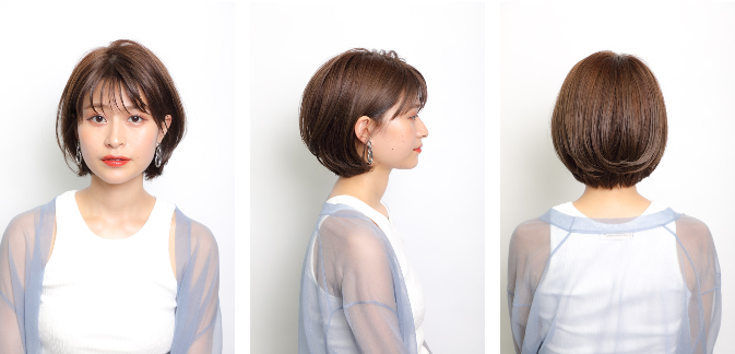 ウェイトをやや低めに設定した、自然な丸みを感じるボブスタイル。骨格に合わせた肌なじみの良いカットに仕上げることで、頭の形をキレイに見せてくれる。