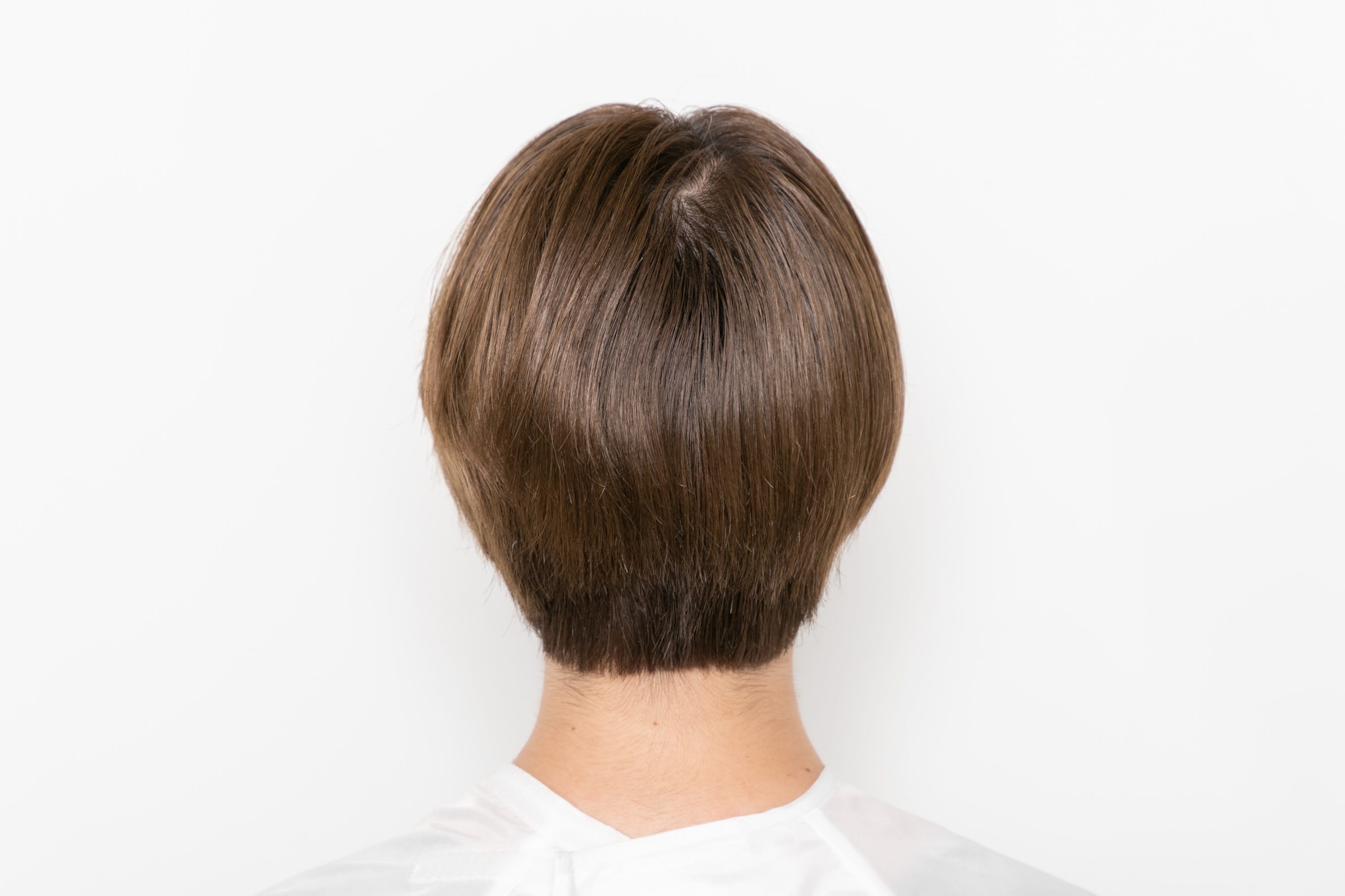 トップにレイヤーが入っており、ややメンズっぽい質感。全体的に角が残っている。毛量は普通、毛質はやや細め、少しだけクセが出やすい。