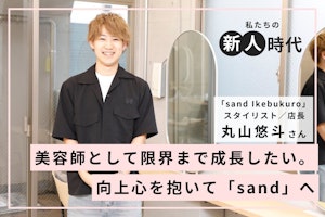 今回は「sand Ikebukuro」で店長を務める丸山悠斗さんに、新人時代の体験についてお話しを伺いました。中学生のときに美容師の道に進むことを決心した丸山さん。もともと美容が好きで、自分なりにカットをしたり、ヘアアレンジに取り組んでいたそうです。