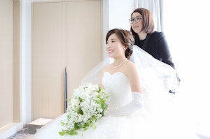 また、フリーランスとして働くようになって、責任感がより強くなったと思います。たくさんのヘアメイクさんがいるなかで私個人を指名して依頼してくださっているので、私にしかできない仕事をしたい、お客さまの理想を叶えたいという気持ちが強くなったんです。とくに、ウエディングの場合は一生に一度の大切な日なので、技術だけでなくおふたりに最高の1日を過ごしていただくためのお手伝いをする、という気持ちで望んでいます。