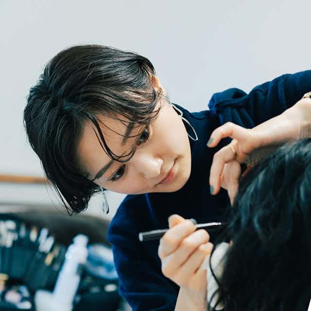 「フリーランスとして動き始めたのは、2020年の2月からです。それまでの流れとしては、ヘアメイク事務所に所属して8年間ほど正社員として働きました。私が働いていた会社はブライダルのヘアメイク事業をメインにしており、正直に言うと周りの方々から信頼を寄せられるヘアメイクになることは、かなり大変でしたね(笑)」