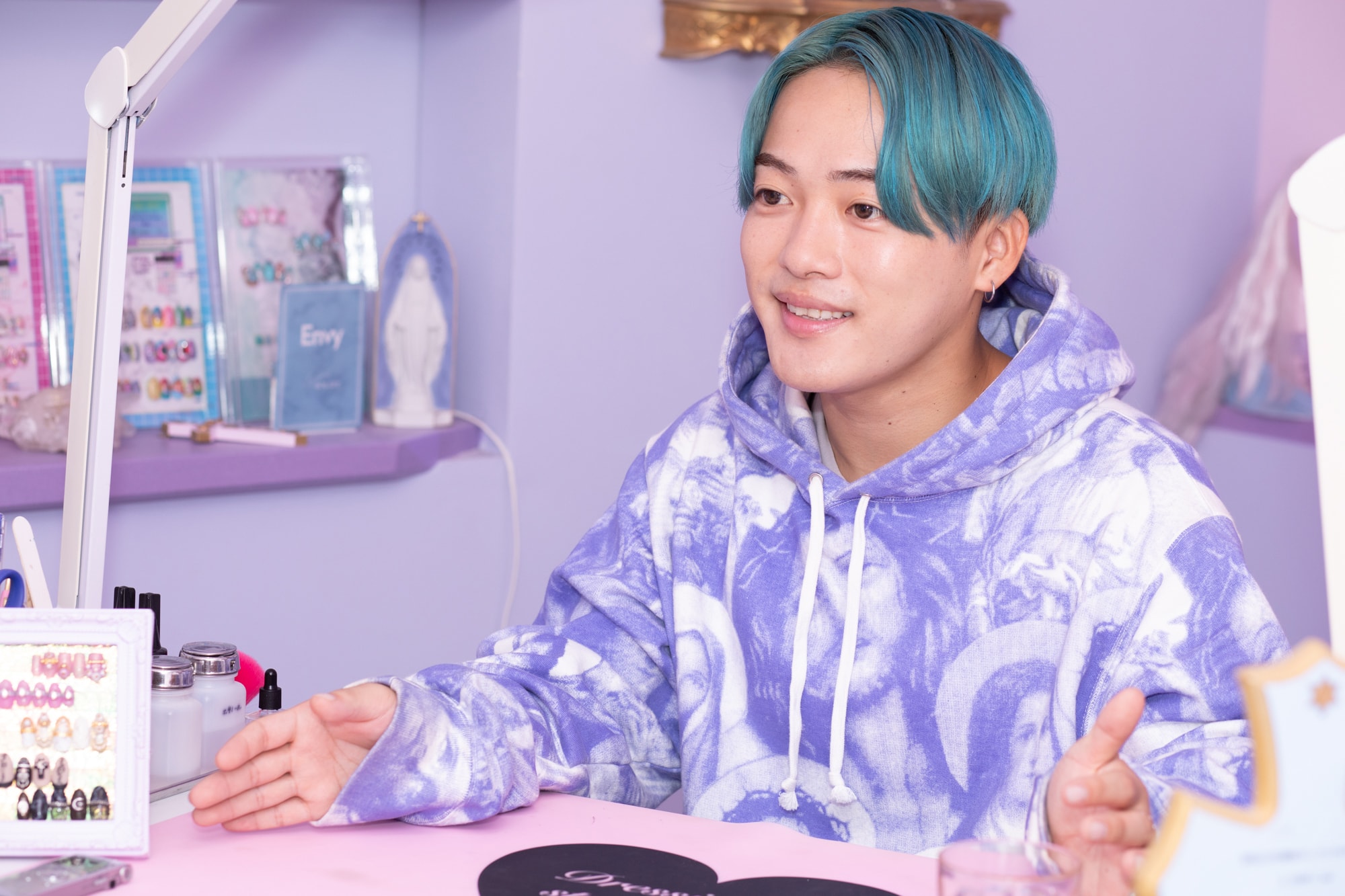 Instagramのフォロワー数が累計10万人を越えるなど、大人気のサロン「Pink rose window」のKAIさん。圧倒的なアート力や技術力で多くのお客様から支持を集めています。前編では、ネイリストを志すきっかけなどを伺いました。後半では、座右の銘は「努力と根性」と語るKAIさんの仕事への向き合い方や波乱万丈な仕事人生をお届けします。