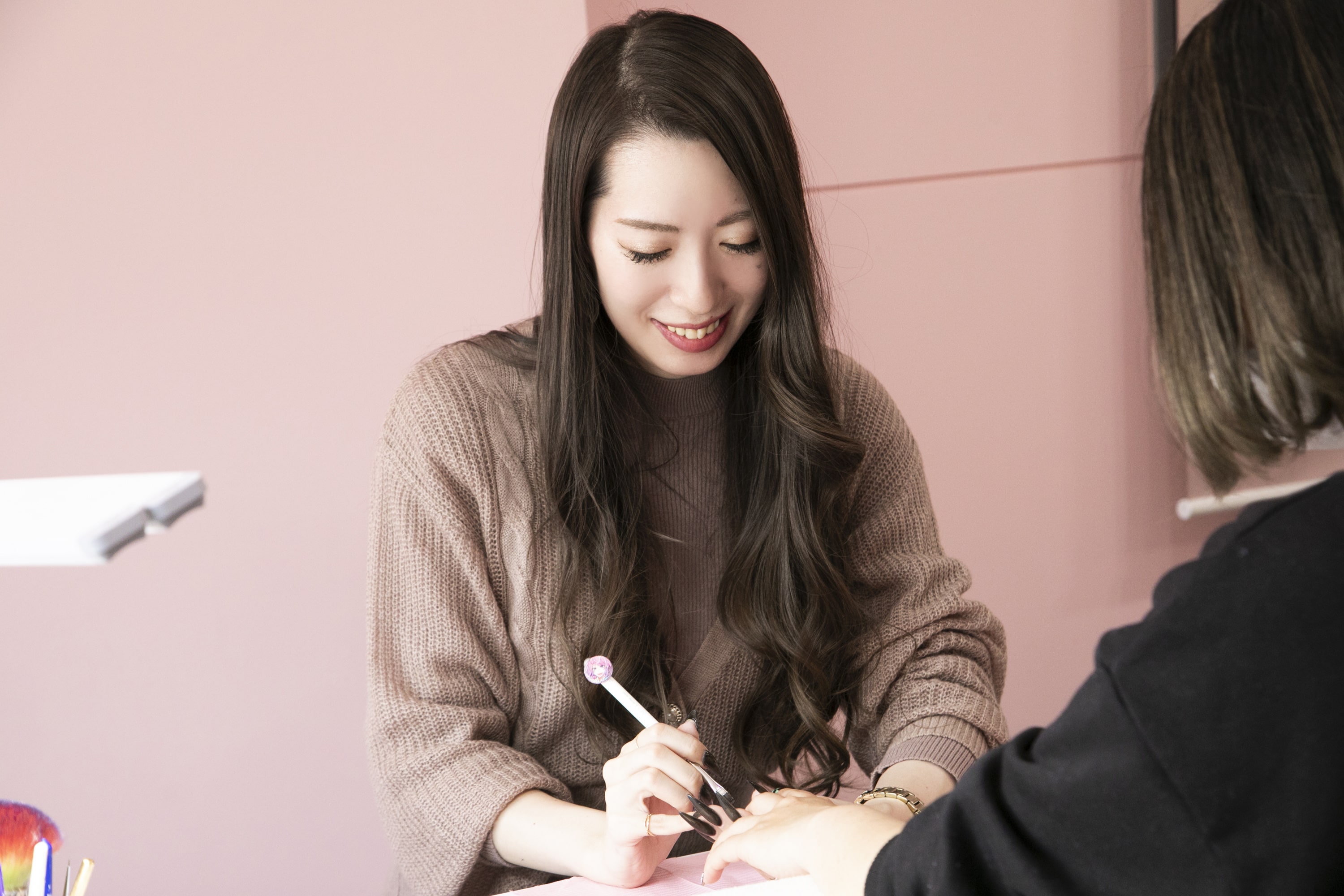 最初は、幼稚園の先生になろうと思っていたんです。でも、学び始めてから、「今やりたいのはこっちじゃないな」と気づいて。美容に関わる技術を身につけられる仕事がしたいと思ったなかで、幼稚園のころの楽しかった記憶を思い出して、ネイリストを目指すことにしました。