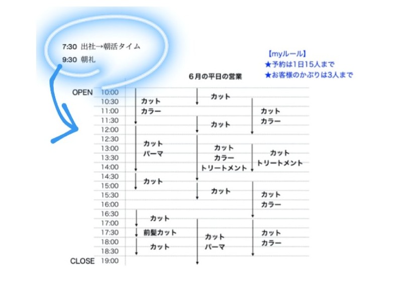 新井さんの1日の流れ/きっちり3席ルールで1日15人。予約枠を減らしたらうまく回るように
