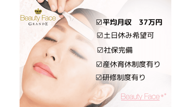 全国に80店舗展開 お顔そり専門店、まつ毛エクステ専門店、理美容サロンを全国に250店舗以上を経営している会社だから会社保険や育児休暇制度などもしっかり充実! 駅直結・駅チカの商業施設なので通勤に便利! 〈社員の働き方を全力応援する会社〉 プライベートを充実させたい、新しい仕事にチャレンジして技術を身につけたい、ブランクはあるけどもう一度理美容業界で働きたい、そんなあなたのライフスタイルに合わせた働き方が選べます。